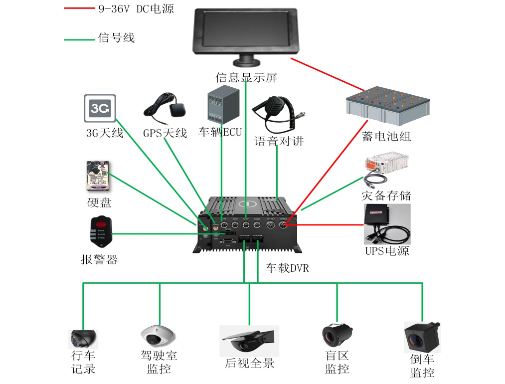 如圖所(suo)示,車載視(shi)頻監控系(xi)統采用模(mo)塊化設計(ji)架構🙇🏻,由🔞模(mo)拟😍攝像機(ji)、車載主機(jī)、信息顯示(shì)屏以及報(bao)警、遠程語(yu)音等配件(jiàn)組成。其中(zhōng),車載主機(ji)内置了GPS通信模(mó)塊和3G/4G網絡終端(duan)。除車載攝(she)像頭分别(bie)部署在車(chē)輛内外指(zhi)☁️定位置,其(qí)他設備安(an)裝在渣土(tǔ)車輛駕駛(shǐ)室前面闆(pan)處。部分車(che)載主機内(nei)置了北鬥(dòu)定位系統(tǒng)并支持擴(kuo)展定制 IO采集接(jiē)口,根據實(shi)際需要選(xuǎn)配車載主(zhǔ)機。