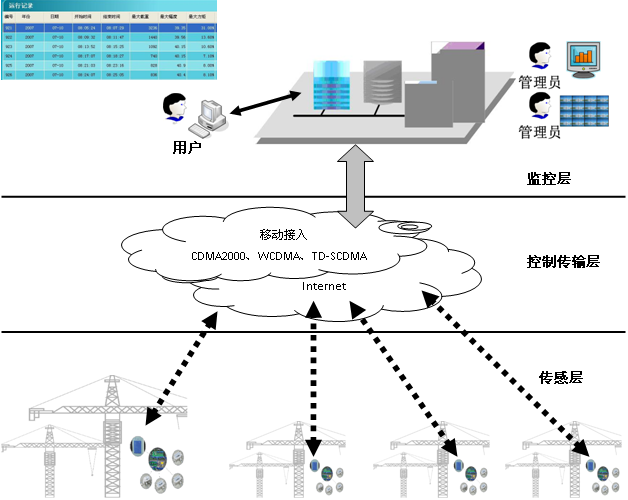 項目建設(shè)采用先進(jin)的物聯網(wǎng)技術,主要(yao)由信息采(cai)集層、網絡(luo)⚽接入層、網(wang)絡傳輸層(ceng)、信息存儲(chǔ)與處理層(céng)組成。如圖(tú)2所示。将移(yi)動執法終(zhōng)端、施工升(shēng)降機、塔式(shi)起重機作(zuo)業産生😍的(de)動🌈态情況(kuang)、工地周圍(wéi)的視頻數(shù)據、混凝土(tǔ)攪拌車超(chao)載超速、實名制(zhì)考勤信息(xī)及時上傳(chuán)給綜合管(guǎn)理平台。綜(zōng)合管理平(píng)台對各子(zi)系統進🔅行(hang)融合,進行(hang)報警聯動(dòng)等處理。各(ge)級管理部(bù)門可以及(ji)✉️時準确了(le)解工地現(xiàn)場的狀況(kuàng),将有效提(tí)高項目管(guan)理和現場(chǎng)管理🌈的效(xiào)率。