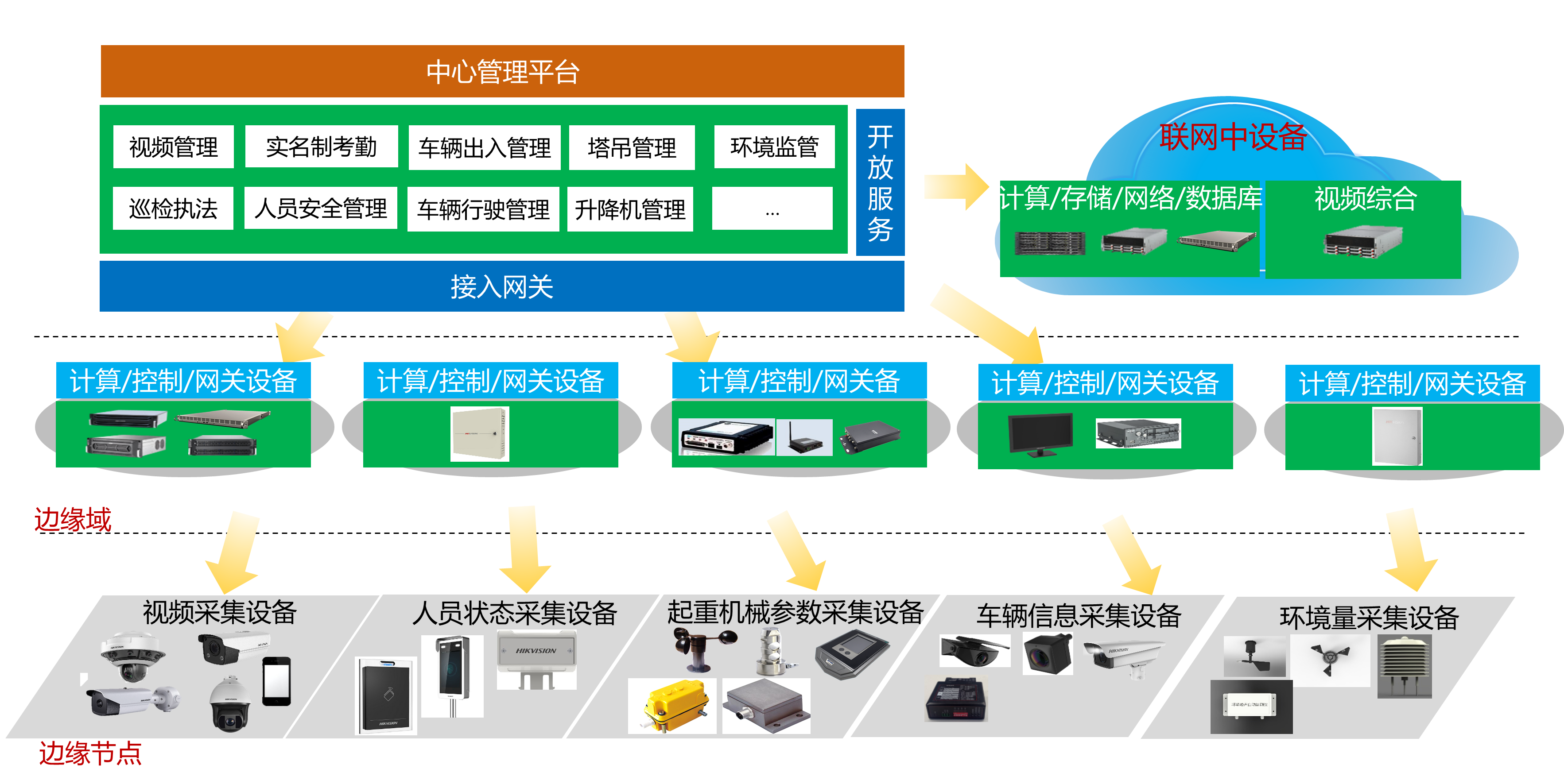 等(děng)模塊。硬件(jiàn)組成(cheng)分為三級(jí)架構(gòu),分别為以(yǐ)攝像頭、傳感器(qi)為主的前(qian)端感知層(ceng)帶(dài)以計(ji)算、傳輸、控制為(wei)主的中間(jiān)層;和平台軟(ruǎn)件中(zhong)心存儲、計(ji)算為主的(de)控制中心。