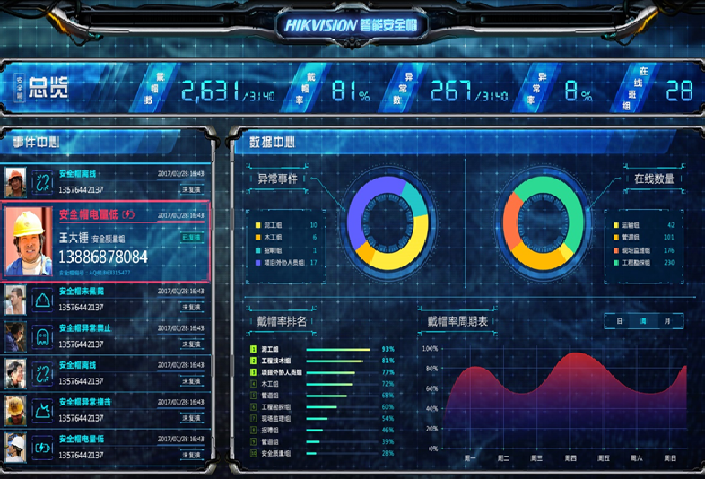 系統(tǒng)能統(tong)計安全帽(mào)電量信息(xi),保障(zhang)電池及時更換(huan)。